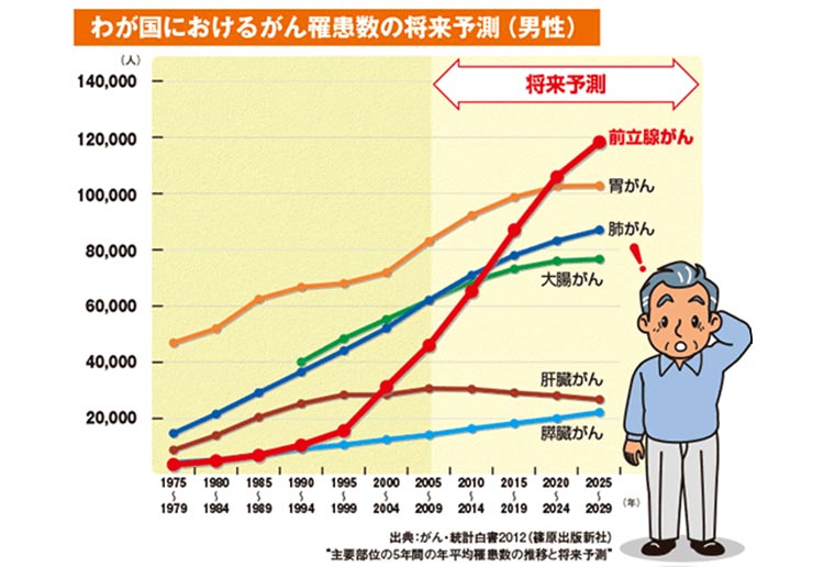 前立腺がんにかかる人数は、1年間で10万人中104人程度ですが、今後も増加が予想されます。